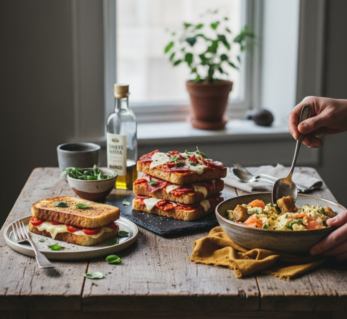 Masz w domu chleb tostowy i niewiele czasu? Z kilku kromek przygotujesz sycącą kolację w 10–25 minut. Poniżej znajdziesz konkretne pomysły – na ciepło, bez mięsa i bez tostera.